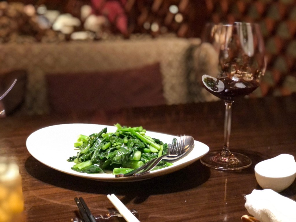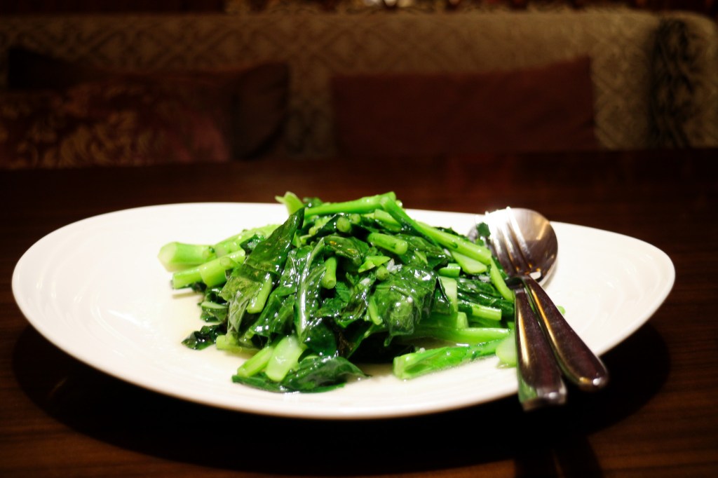 很快的第二道菜餚也接著來,看來馬上叫碗飯是正確的,第二道是「芥蘭菜(蒜炒)」(Chinese Kale,Cooking Mothed with Garlic)。
