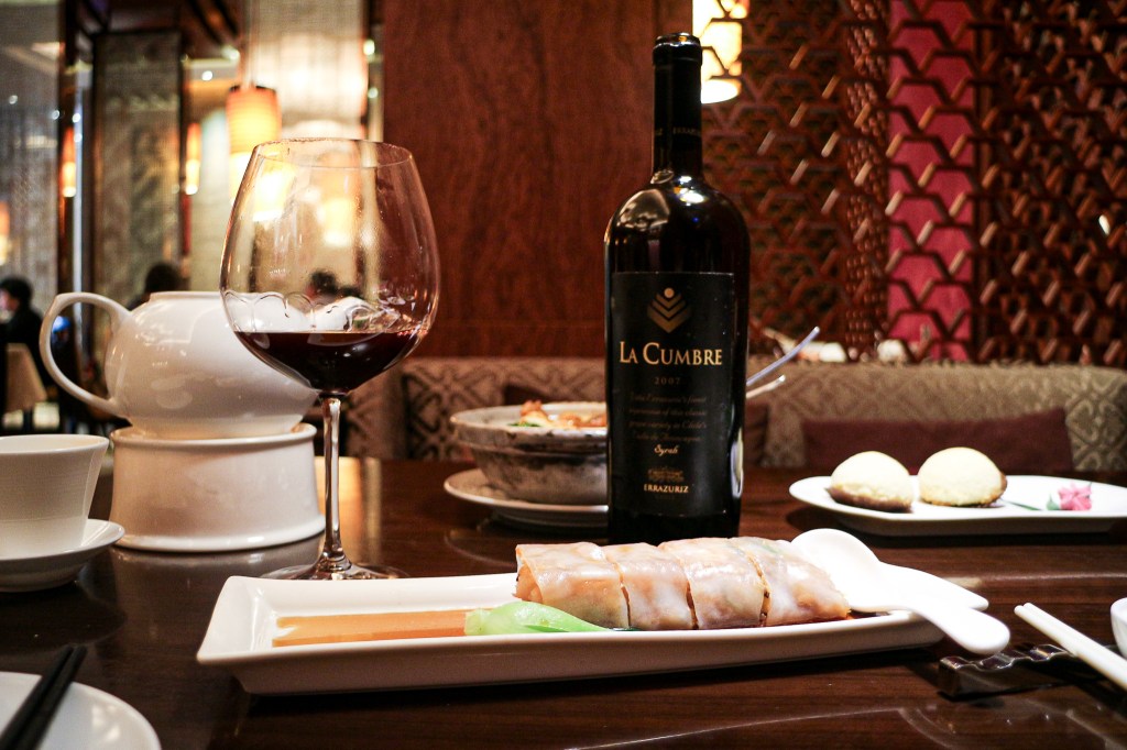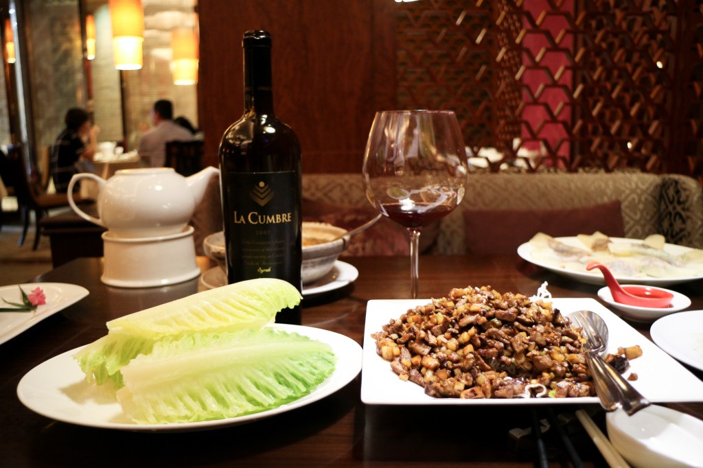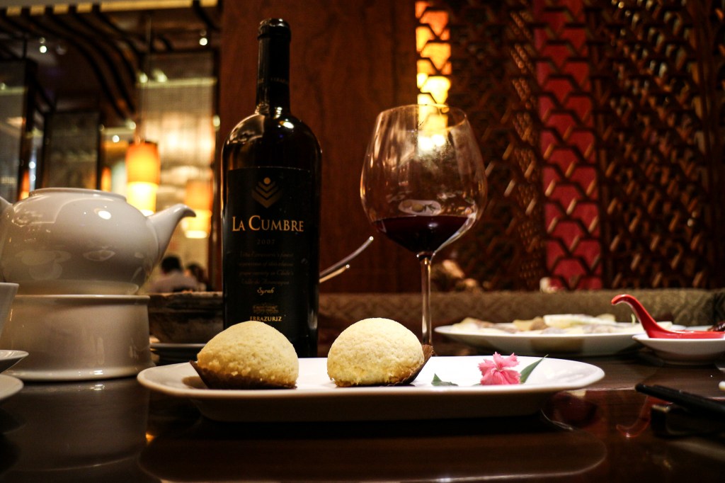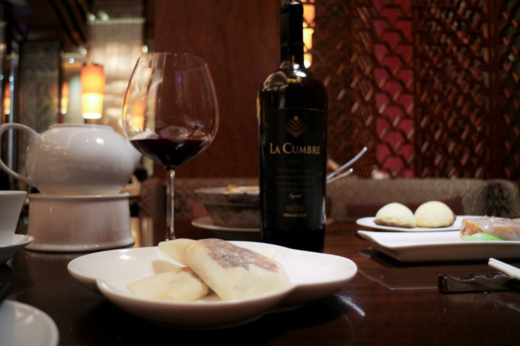 搭La Curmbre Syrah,嗯嗯…竟然產生一種玉蘭花香,還是常聞的白菽花香我分不太清楚了,實在很特別,儘管整體滋味仍是厚實紮實,雖然表現酸澀,但還滿搭配的。