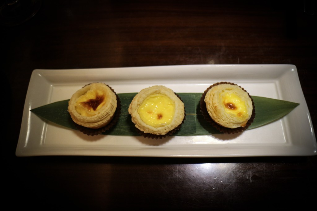 一次三顆,而且這樣的體型比起其他餐廳,這是算大顆了的蛋塔了。口味酥香,但脆度普通,可是也算是美味甜口好吃的,皮有千層酥薄香,蛋塔餡溫熱而甜香,儘管這是小時候的最愛,但吃起來仍是滿足。