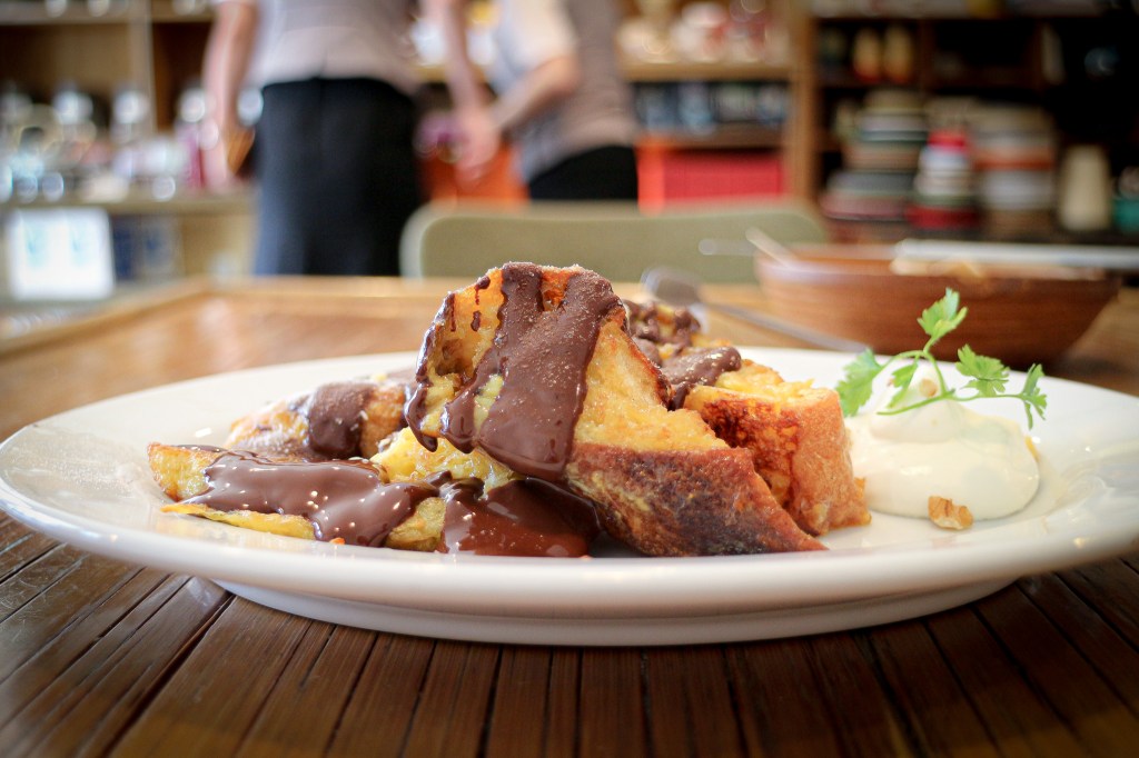 好的,等待一段時間,其實也不長啦!!「French Toast with Chocolate Sauce」上桌了。