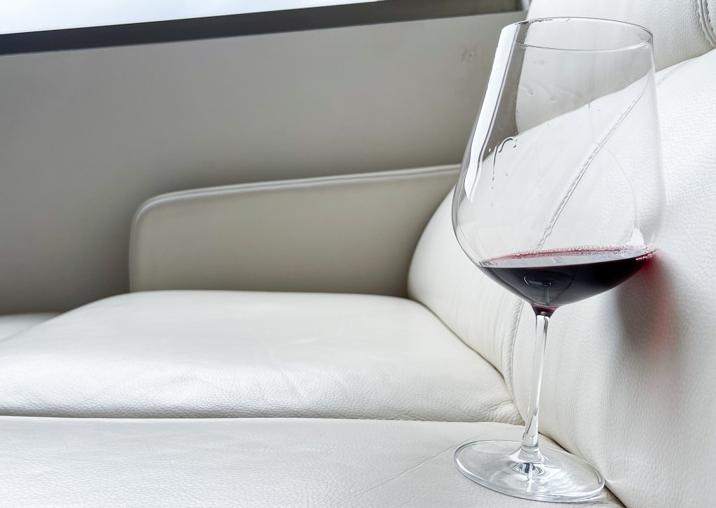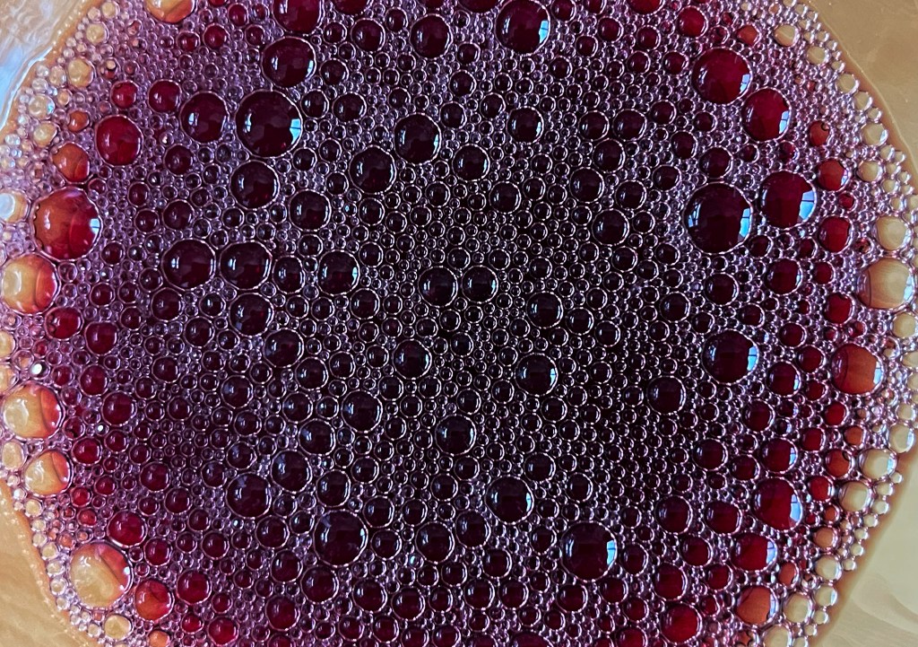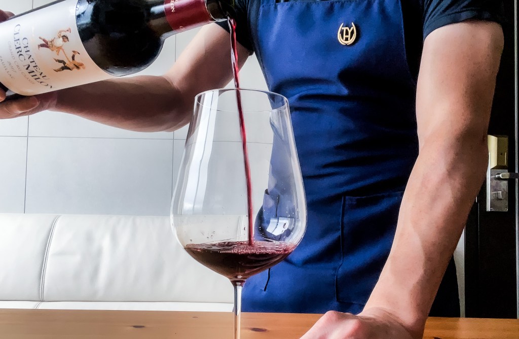先觀察色調,當葡萄酒注入酒杯中,深紅紫黑的酒柱俐落乾淨的跌進杯中,產生的泡沫酒浪優雅迷人,心裡即刻讚嘆,這就是波爾多混釀。
