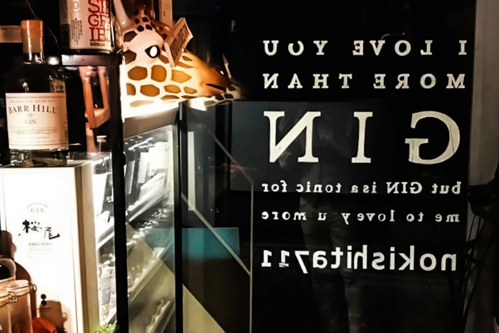 話說京都鴨川一線酒吧何奇多,樣式風貌也十分多元,而不像銀座那樣比較嚴謹正式以及俐落。這間酒吧不大,而設計得如同迷霧森林,不又像是童話故事裡的深山野居。座位部分也僅能坐下五至六人。沒有吧台,站著喝反而成為自在,因為桌位都被他國人坐下了,而我站在吧台也無所謂。