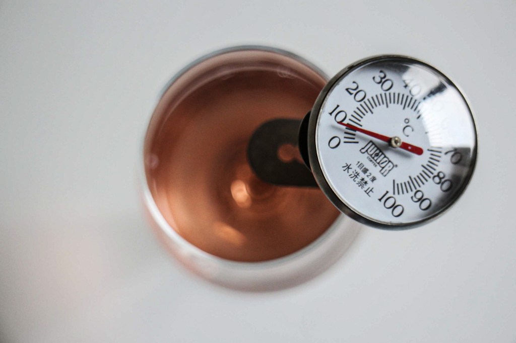 好的,喝清酒真的多種喝法,尤其現在清酒喝法可是有新舊世代的交替,不過勇於嘗試才能展現清酒的迷人之處。接著讓他下探8度進入「涼酒」階段。