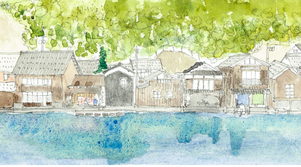 (伊根舟屋圖畫版,摘自mukaisake.official.ec)