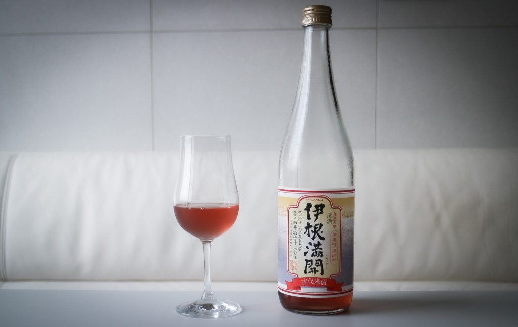 中味稍微酸而麻苦,後味依舊綿麻,第一直覺讓我想到Campari,尾韻酸甜甘口僅剩簡單的酸甜麻味。理想好飲的古代清酒。