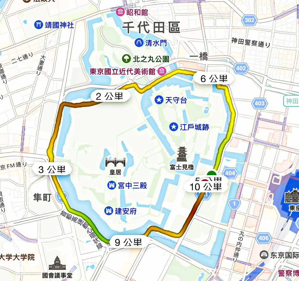 其實過了櫻田門之後,距離終點便就不遠了,當然從半藏門直到櫻田門,往內看的古老城樓,這裡便是所謂的皇居了,所以有時間有體力就跑個兩圈吧。