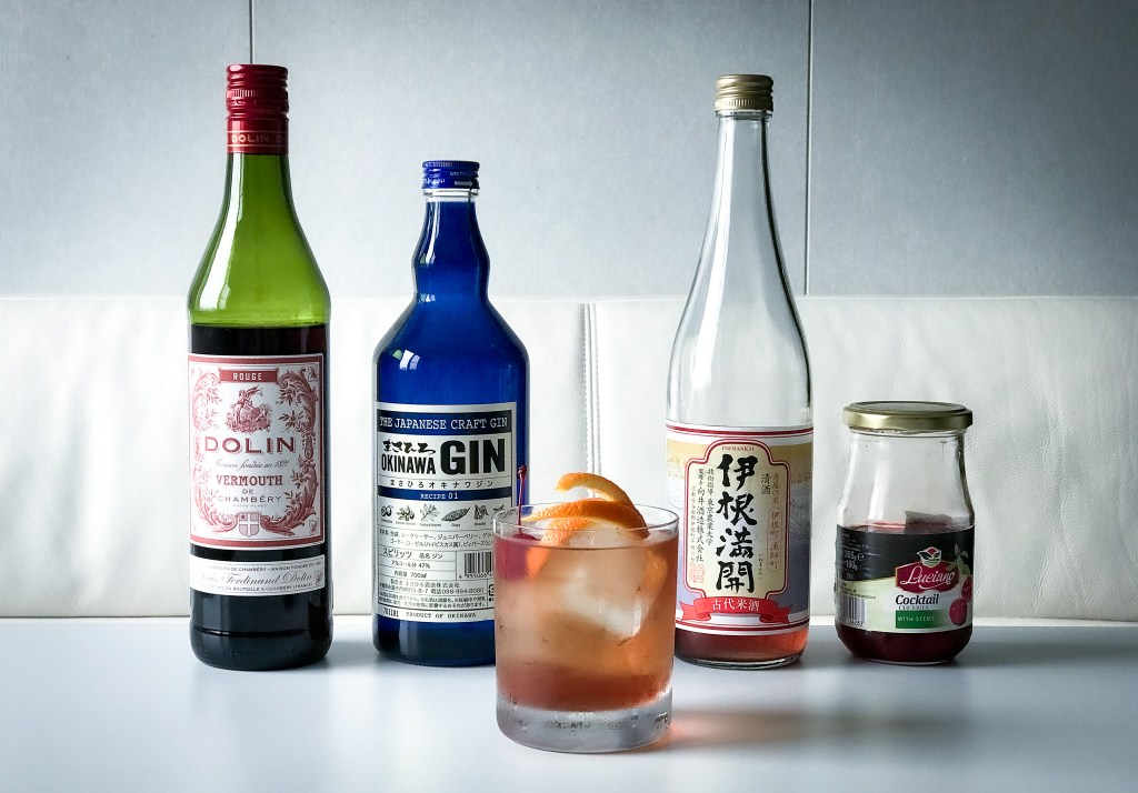 而在琴酒的部分,我又擔心清酒的甜會讓整體風味過於平淡無奇。所以選用有海味、甲殼、藻類的Okinawa琴酒,我相信如此可以有所互補,再配上甜苦艾酒,然後加顆甜蜜的漬櫻桃,以及美國香橙皮油與裝飾,這款我只能說真的是仿Negroni的模樣與做法,因此稱之為“SAKEGRONI”。