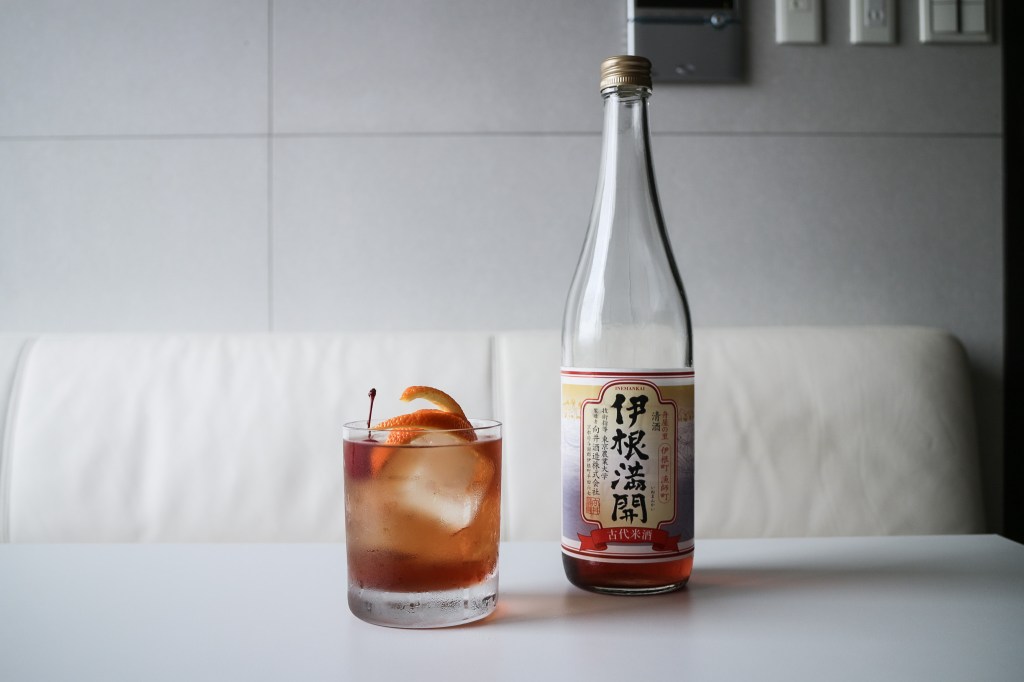 由於這一天我正在品酒,品一支來自京都的紅米清酒「伊根滿開」,由於他的味道太像Campari香料酒了,所以我產生了創造一杯類Campari雞尾酒的想法。