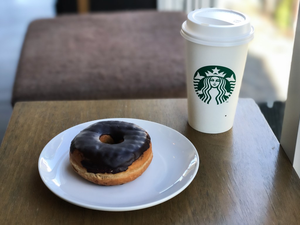 所以今天的餐點就是一杯拿鐵與多拿滋作為早上的安慰。在日本,在日本咖啡館,要吃到甜甜圈似乎是稀鬆平常的事,當然在星巴克也不例外。