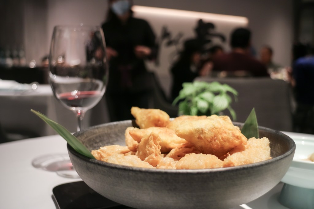 真的,只是疫情稍緩之故,不然我不太會出門用餐,隨著逐次的、慢慢的、又時而緊縮的開放政策,除了衷心的盼望,希望此病毒可以早早遠離。我來到民權東路的「天香樓」,是以「杭州菜」為主軸的餐廳,這間餐廳除了連續3年順利獲得米其林一星的成就外,近期也重新裝潢過了,餐廳環境更詩情畫意,而確實有「上有天堂,下有蘇杭」之感。尤其仍然保持著乾淨明亮,而座位的設計方式卻像法式餐廳的風格,與一般對中餐廳的裝潢設計意象有挺大的落差。