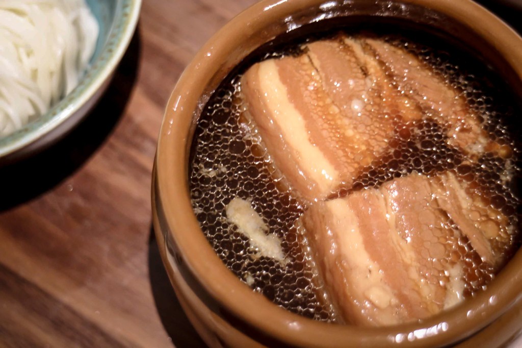 搭上麵線配合醬汁。好吃順口,尤其麵線不爛也不黏,而稍稍微實。所以這口感當然好,尤其又刻意淋上東坡肉的湯汁,真是美味。