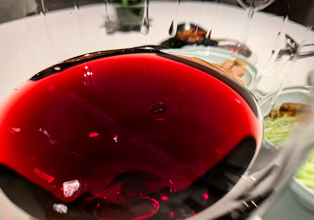 中味單寧厚重苦感,尾韻酸澀甘硬,而喝到後面近一小時,似乎在醒酒後才有迷人的桂花、紫羅蘭,還有莓果黑醋栗的甘甜。