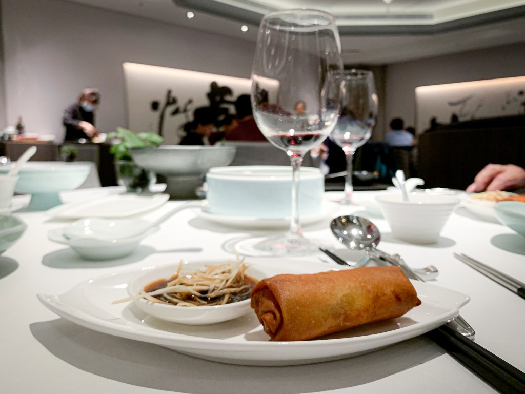 接續則選擇了「花雕醉雞」以及「筋肚捲腱子」,此外吃中餐有個好處,就是會有點心,所以在前菜部分,我點了「酥炸響鈴」、「天香小籠湯包」以及「蝦肉春捲」。而湯品,我則選「宋嫂魚圓羹」取代,因為我和母親兩人,自然詢問湯品的份量,經過服務人員調整,以一份湯做兩顆魚丸的的模式上菜。