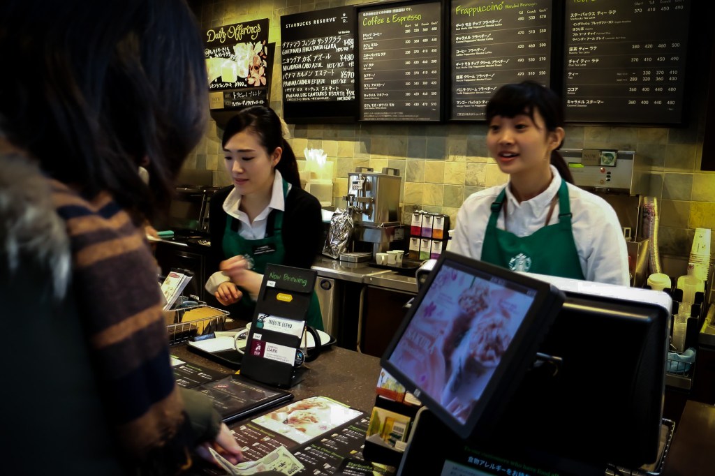 到了櫃臺前,面對不會日文的旅客,日本星巴克伙伴依然是保持著非常謙恭的服務,挺不錯的是年輕一點的店員英文能力都還不錯。