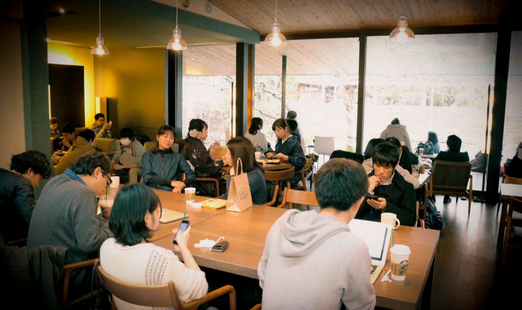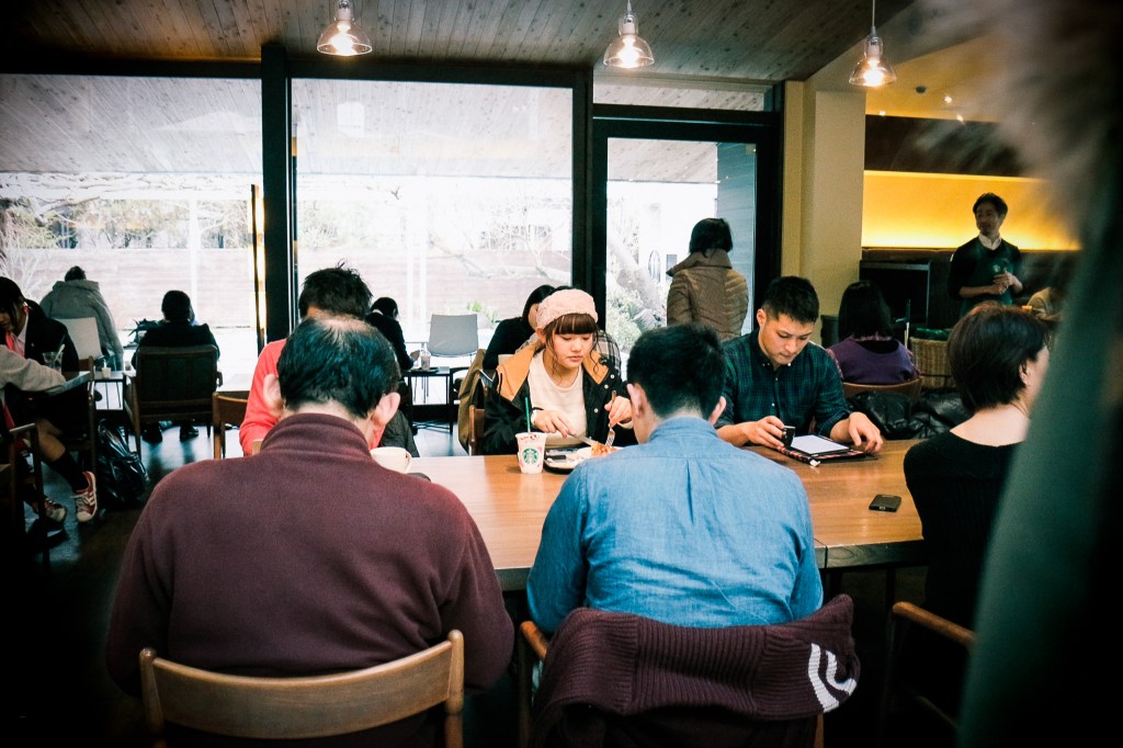 其實鎌倉的居民對這裡是相當有感情的,日本星巴克決定在這裡豎立為其特色門市之一,並重新裝潢改造,留下原有的特色並融入了星巴克元素設計。因為造型的關係,使得室內空間挑高,均以木質建物為特色,在空間呈設上,以桌子、沙發等為主,另外也有長桌,以及吧台的手工咖啡位置。