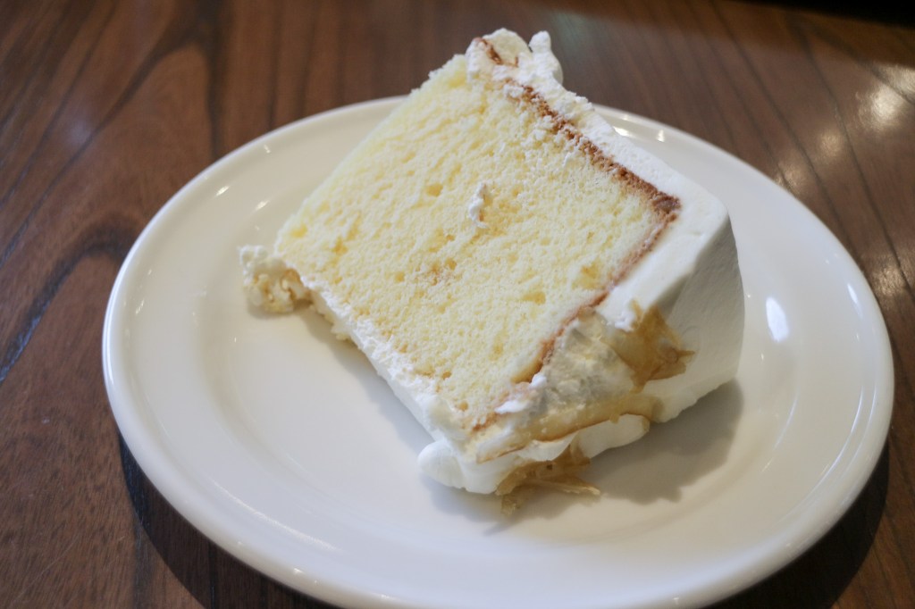 不過戚風口味並非出眾,但是那種綿綿的彈性,總是容易想要好好地的入嘴中蹂躪咀嚼,這樣滿足感總是歡喜。然後再喝一口焦糖瑪奇朵…甜加甜,都抵銷了,難怪會不出眾。