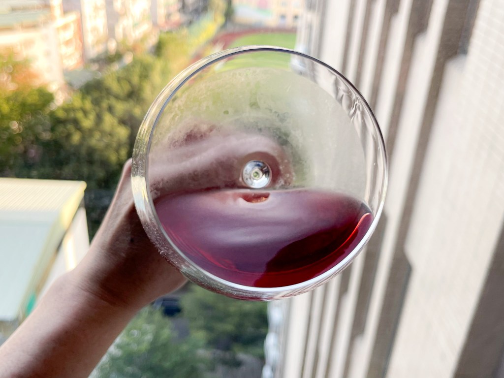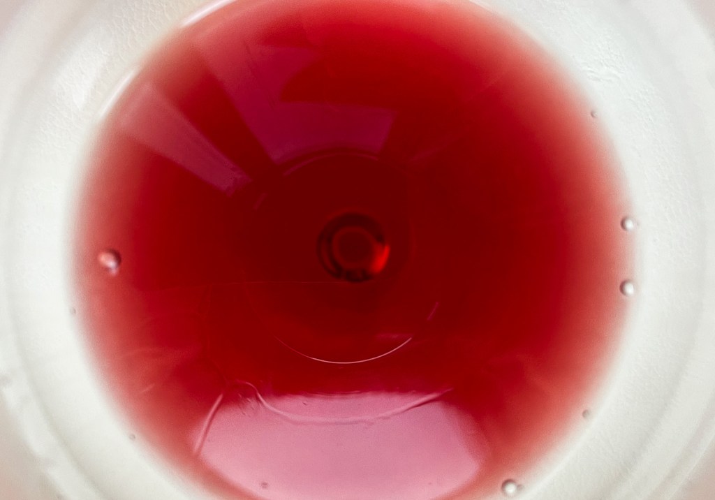 先觀察色調,哇…確實出乎我想象,它表現的十分淡雅,像是果紅,更像60%的蔓越莓汁,我直覺是一款小清新、小可愛、未成年少女葡萄酒,好的,先觀察一下它吧。