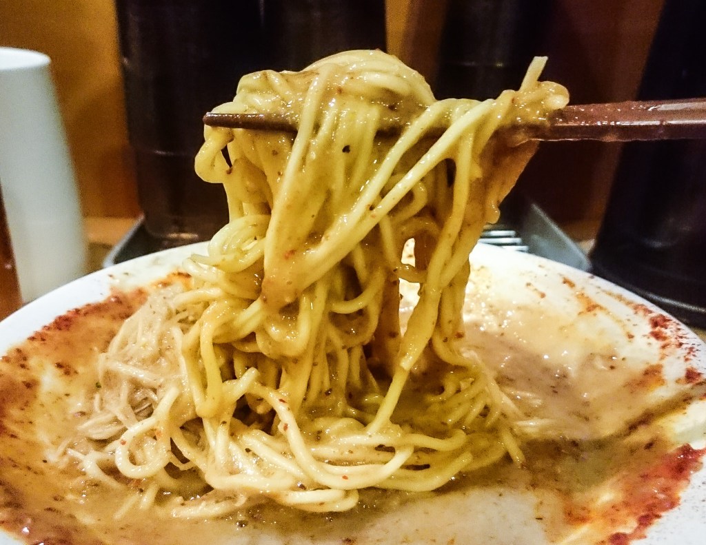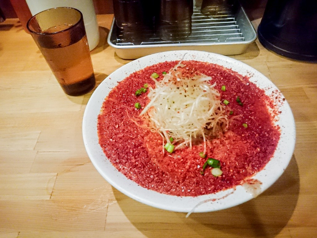 由於天氣冷,加上看到“赤”,所以心裡湧起了取暖的念頭。因此,我就點了一碗“嚴選唐辛子”的拉麵。