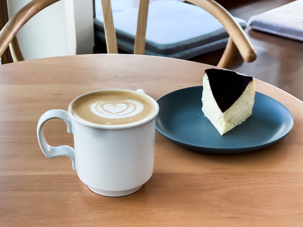 選了一塊巴斯克,巴斯克通常也是咖啡館裡的常客,而我的經驗很難不好吃,但也是有硬邦邦像Double Cheese Cake的,不過更嫩更滑有稠稠的感覺,就是我喜愛的。這樣形容有點變態。