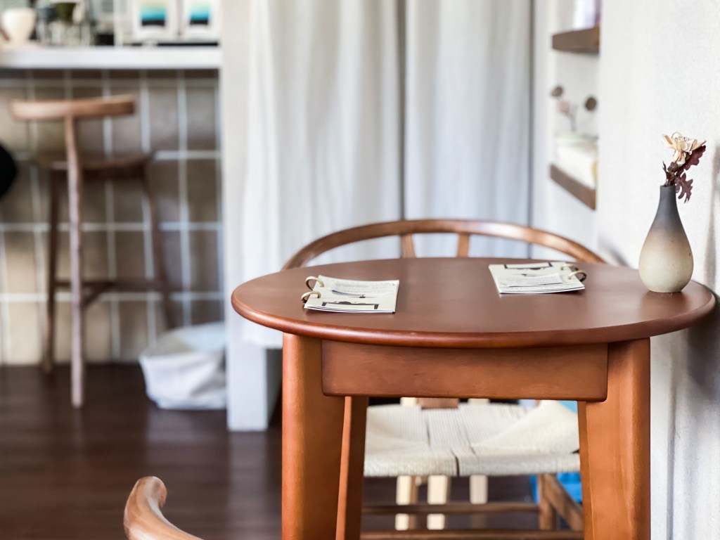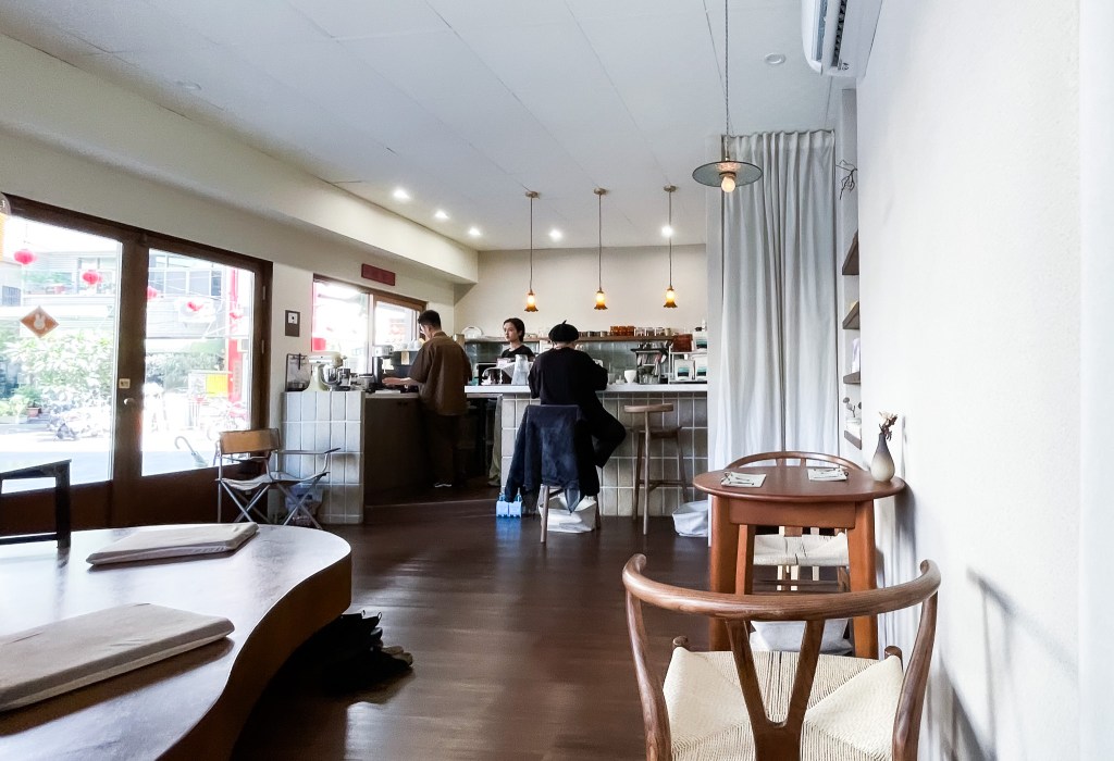 是的,如臉書如IG的畫面,位在一顆大榕樹下,一處設計溫馨和風的咖啡館。其實座位不太多,吧台、和式然後兩處桌位,所幸挑選靠窗一處。