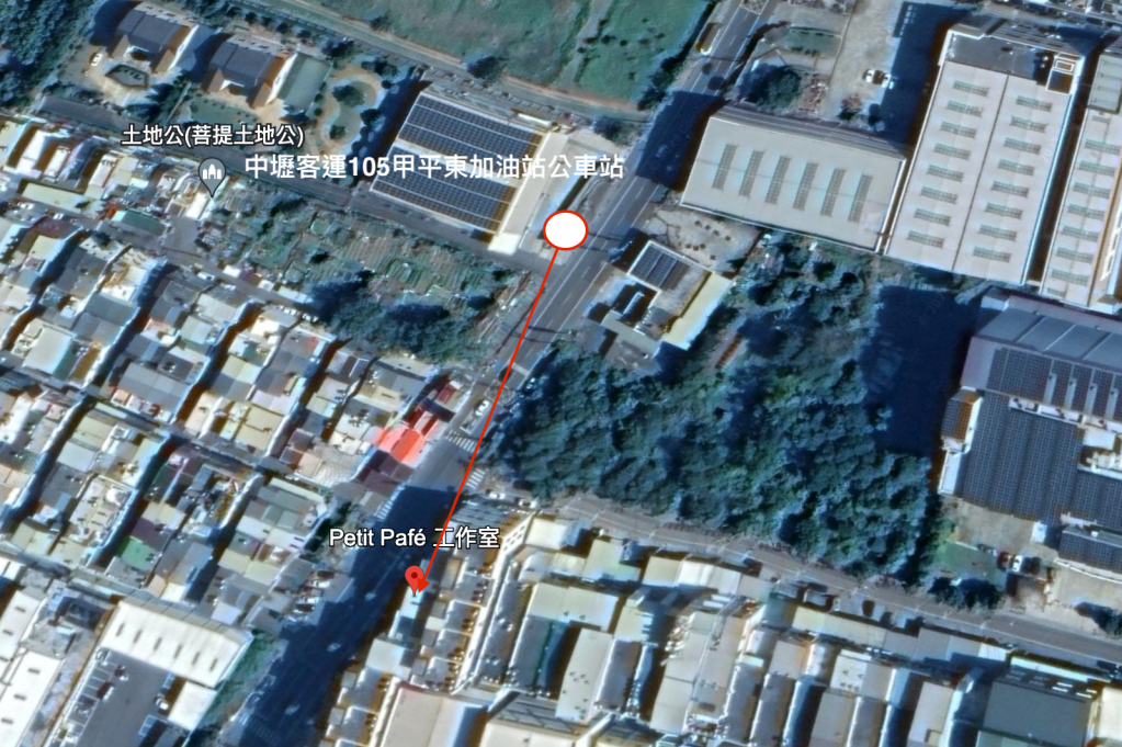 其實當時是這麼想的…一個人去日本東京都不怕迷路了,何況是平鎮?但話說回來,日本交通還比較方便。倘若要靠搭公車,那麼還得多做一點功課,但是現在至少現在(指2023年)公車App會方便得多,所以困難度也還好。可以在中壢客運總站搭115甲,座到平東加油站下車,就會到這天的目的地甜點餐廳Petit Pafe了。