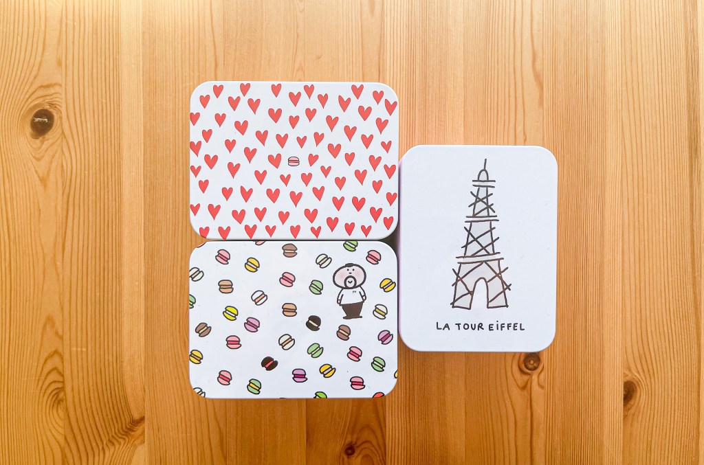 不過,四顆裝的鐵盒已經完完全全吸引著我,分別有「胖胖主廚」、「艾菲爾鐵塔」以及「小愛心」鐵盒,所以給來都各來一個!!