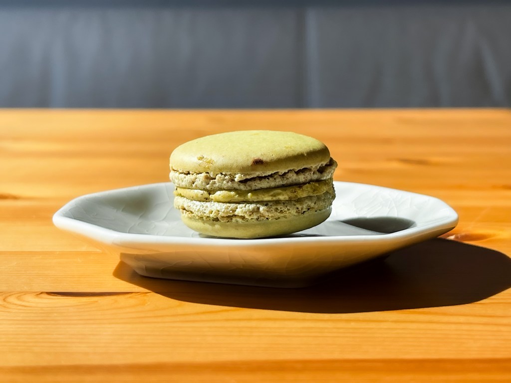 這款是開心果馬卡龍,天啊‼️我是有多久沒吃了,還真的挺久的,重點是這味道很有回憶殺。