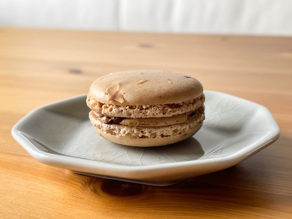 因此咀嚼首先軟嫩接著一連的脆粒口感,且不斷展現榛果的滋味很香甜,相當酥香的馬卡龍。