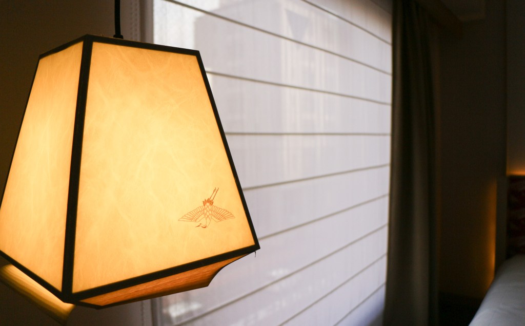 房間裡的設計,也可以感到十分的京都古都風格,除了床頭紅色的布畫藝術外,燈飾,還有牆壁也以古時紙木門與輕木色系為主。因此,略感古色古香。