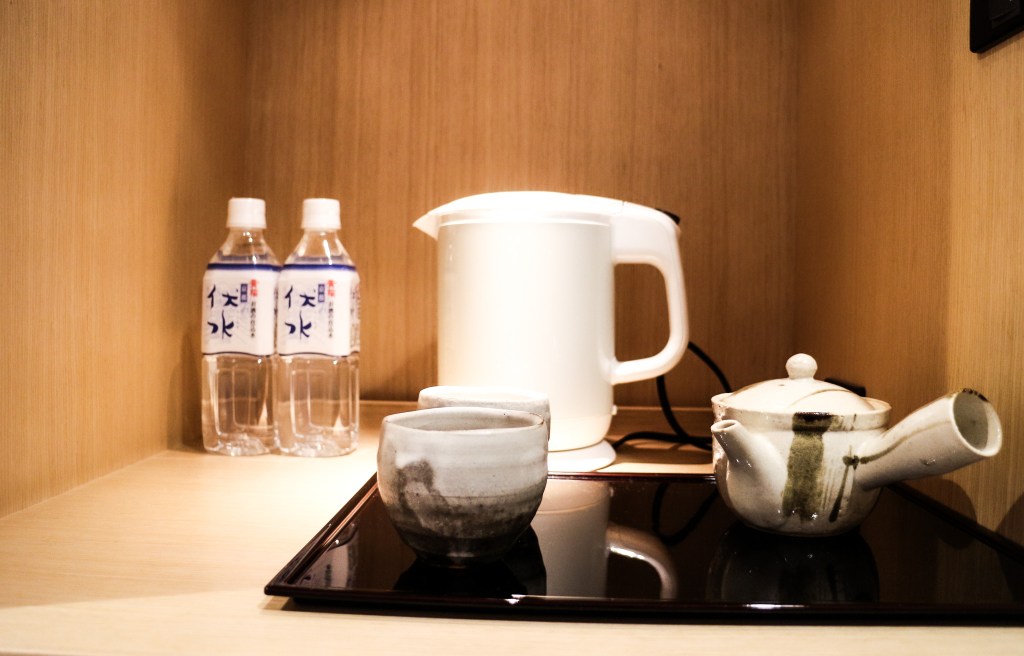 如熱水壺以及代表日本京都茶文化的茶具外,拉開小抽屜,提供的簡易茶飲與咖啡,我個人真心覺得很滿足。