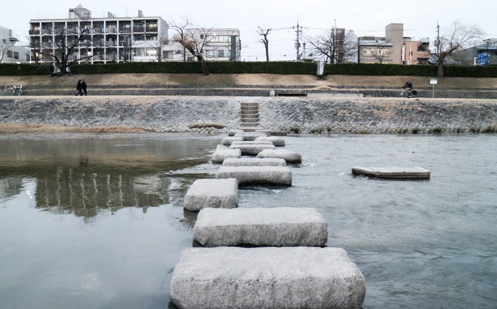 鴨川最著名的,就是一塊一塊在河床上的石塊,稱之為「烏龜石」,我想大概像龜背一樣,所以這麼稱呼的吧,走到鴨川一定要來跳一下。