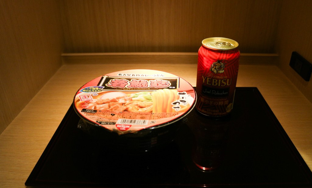 看看,啤酒我買的是惠比壽與JR聯名的啤酒。一口泡麵,一口酒,爽快,此時儘管看不懂日文,由於台灣台南發生地震,我無論在東京還是京都都大肆報導關心,看來對我們真的是相當友善。