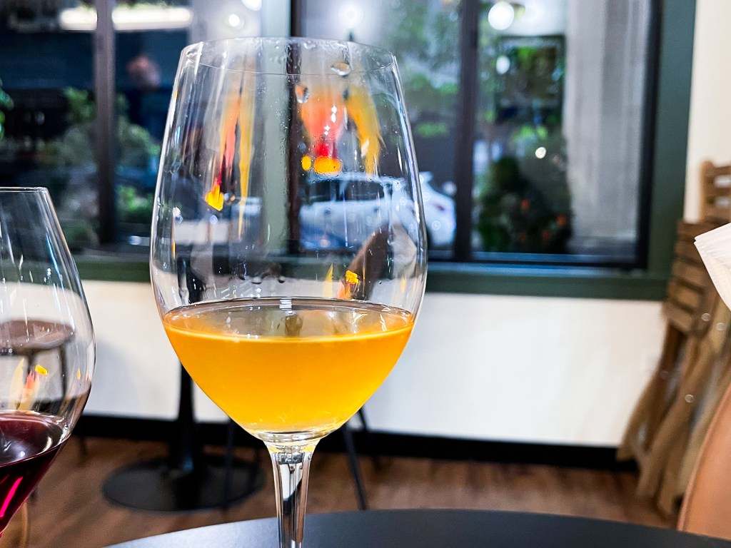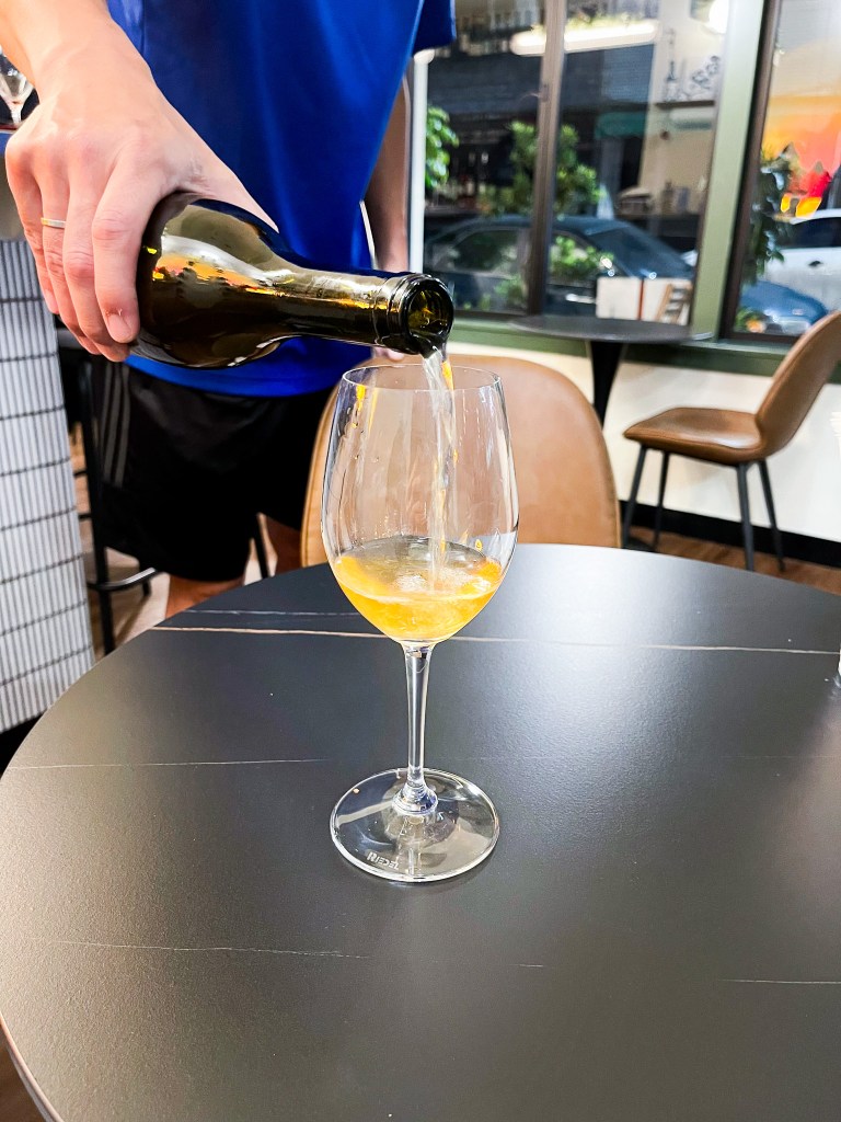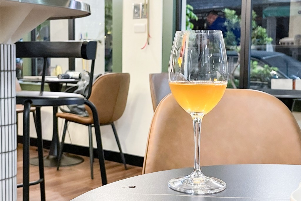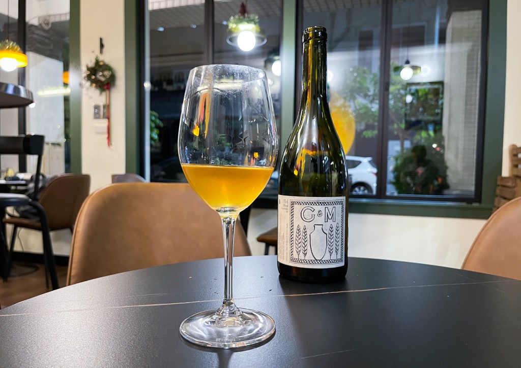 進來之後,首先我挑選了位置,然後我的習慣就是要點單瓶葡萄酒,透過店主帶我到地下的葡萄酒區後,我看了個半天突然看到橘酒,突然就想要喝橘酒。