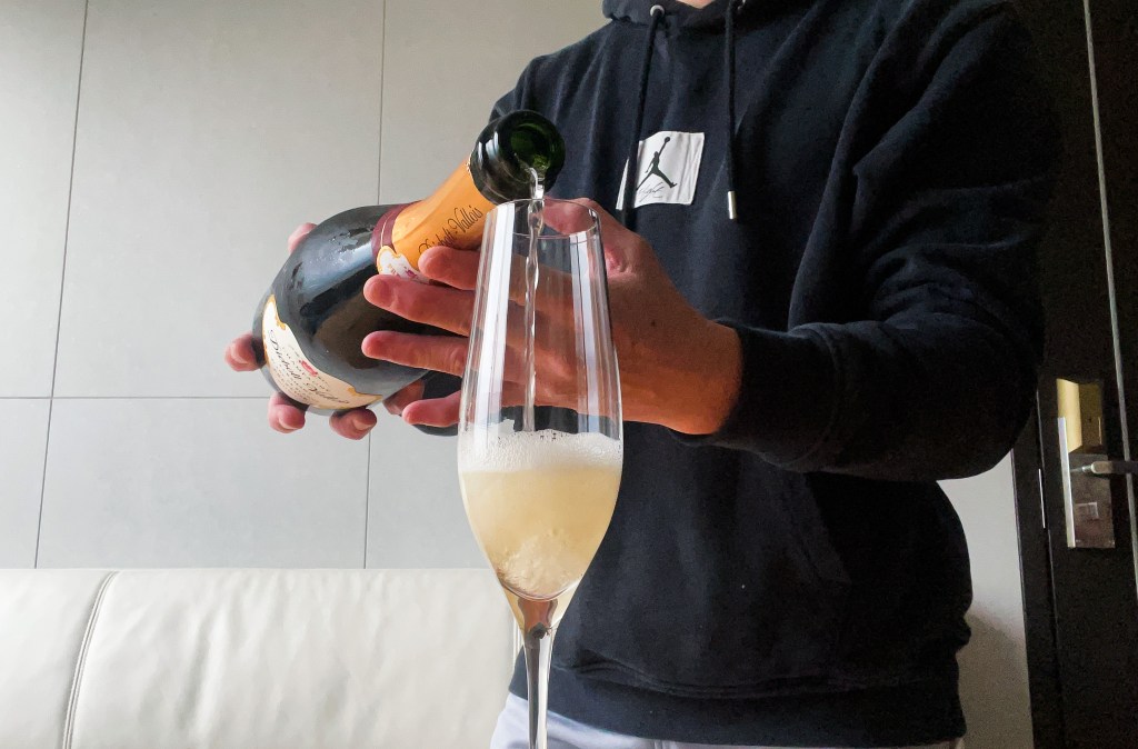 儘管開香檳已經駕輕就熟,不過經過之前才開錫箔酒塞變衝出撞擊到臉部的經驗後告訴我,一切都要小心。