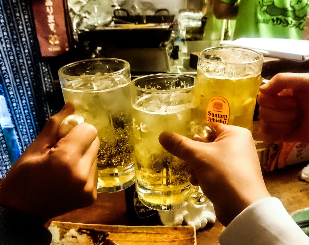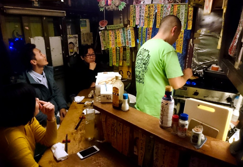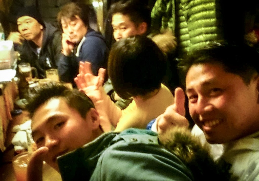 當然我們也開始與隔壁這位大哥熱絡了起來,尤其知道我們是台灣來的,他也問起並關心地震的事情,實在就甘心。此時小祐老闆也稍微歇息,也拿著酒與我們閒聊暢飲,十分熱絡開心。不過很快的,又有很多人來到店裡,一下子又再度客滿。