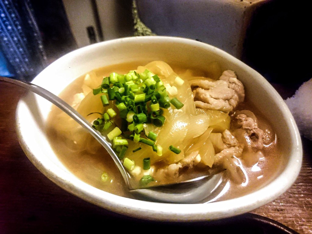 接下來這一小碗是燉煮物,當然既然是豬肉燒內容物就是以豬肉為主,在氣候冷颼颼的同時來點溫熱的煮物,胃就溫暖囉。然後別忘要喝highball整個爽爽的感覺!!