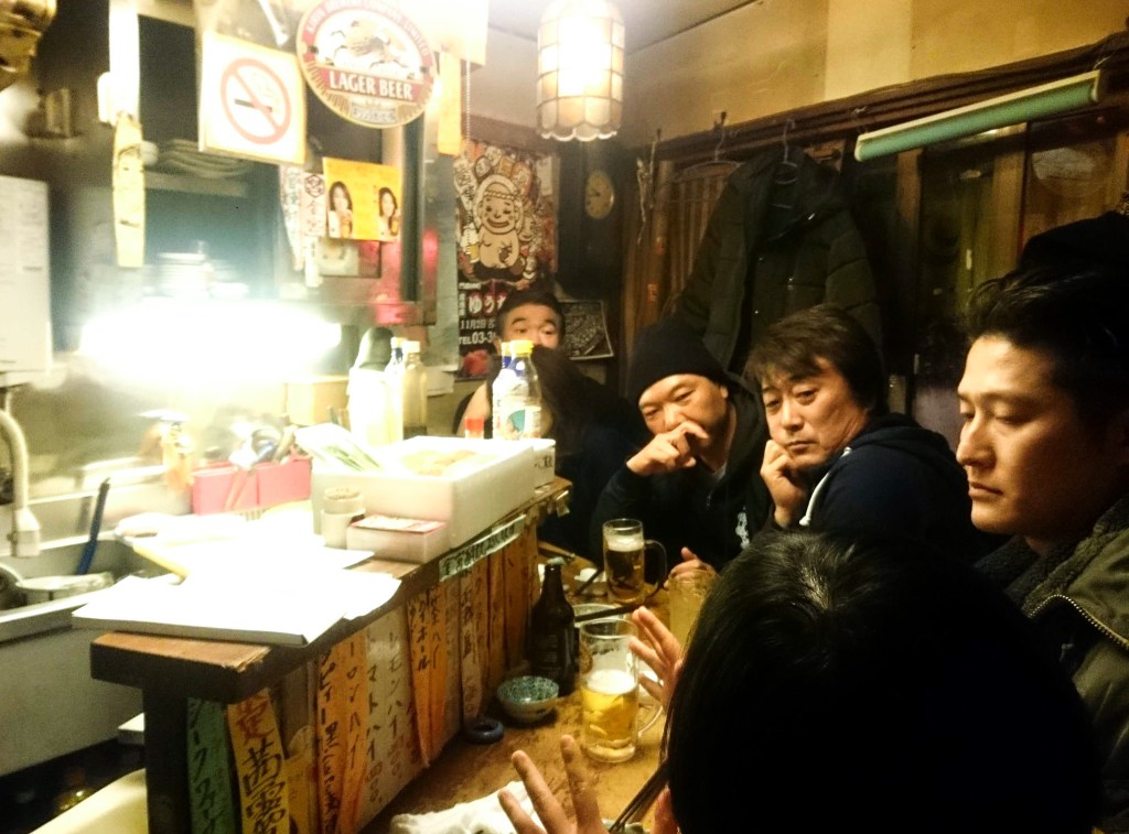 時間很快的過去,到了曲終人散的時間,因為時候也不早了,時間竟然已經晚間23:30。在這樣的小店大家彼鄰而坐,大家都很關心臺南的地震,也由衷感謝,因為就這麼一期一會了。儘管彼此也很會扯,也超high,透過日本工作朋友的口譯穿針引線,大家都超high。當然,為了更熱絡不冷場,我們也引用了些大家熟悉的明星來開開玩笑(不過說真的,都還有幾分相似)來居酒屋不就是該如此嗎。