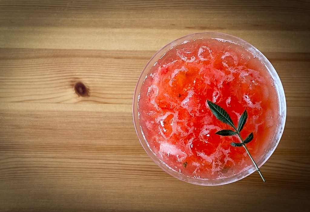 在家裡,剛剛調製了一杯美味的草莓Old Fashioned後,我決定再調上一杯酒,名為Strawberry Daiquir,以海明威最常飲的調酒作為發想,好讓草莓發揮最大的效果與作用,當然還有還沒用完的芳香萬壽菊。
