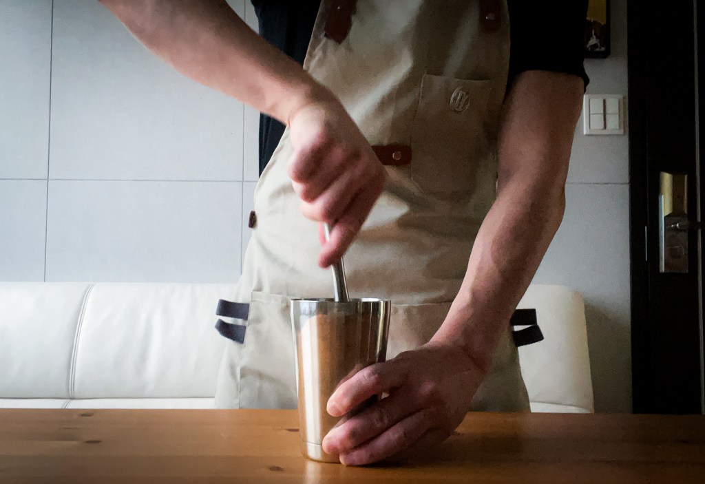 大致搗碎後我再加入蜂蜜約15ml左右(可以用一般糖漿,但我想要有蜂蜜檸檬感),再以攪拌棒稍微調和。