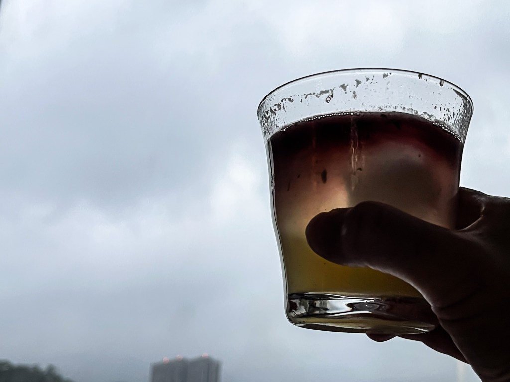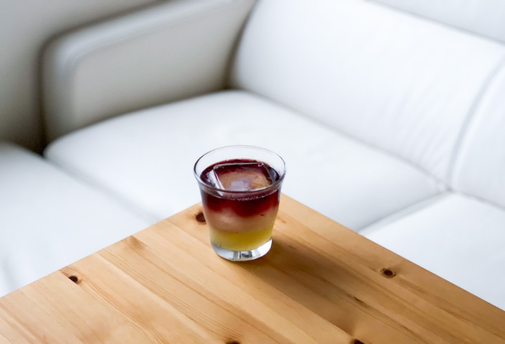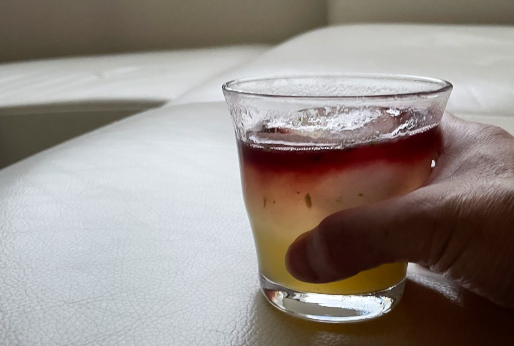 開始來品味這杯JFK HARRIS的調製成果吧。從外型看來,確實有點與NY SOUR有點像,不過不是威士忌而是白蘭姆酒,還有部分我刻意留下的碎片薄荷葉感。顏色漸層,如文章所述的光譜層次,優雅若然。