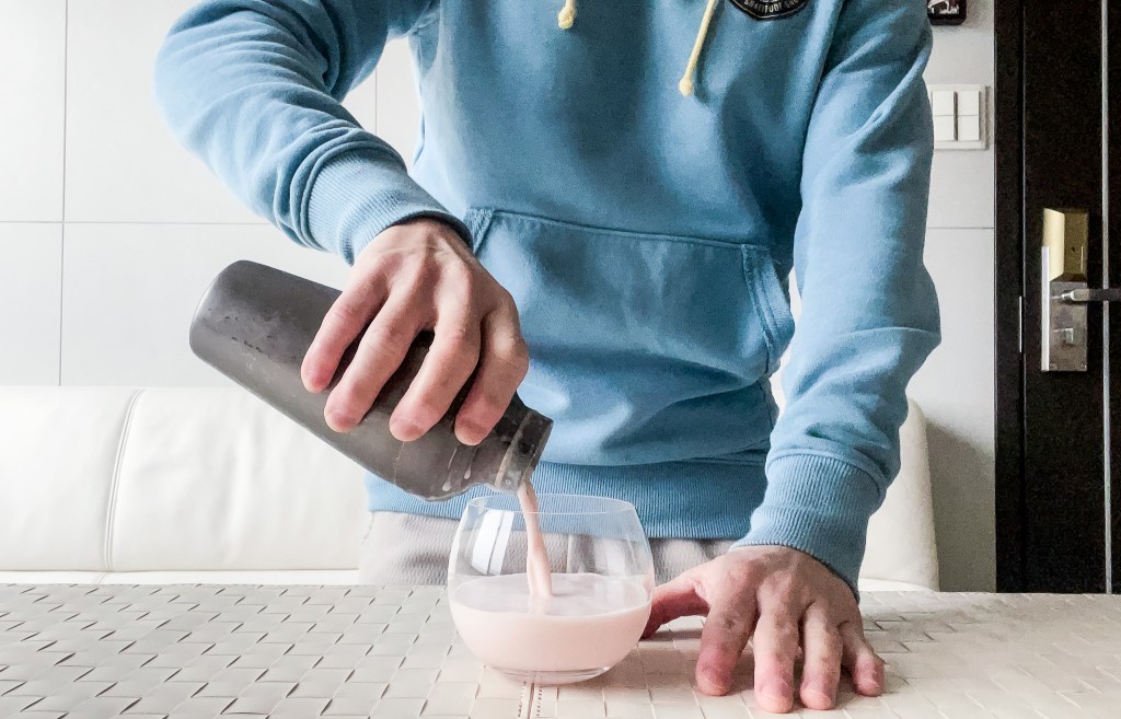 突然想要先來一杯緩和身心的調酒,於是又跑去超市買了所需的材料,例如牛奶…,對的,要調一杯在運動過後相對適合的調酒。對的,就是要調一杯「草莓牛奶調酒」STRAWBERRY MILK。