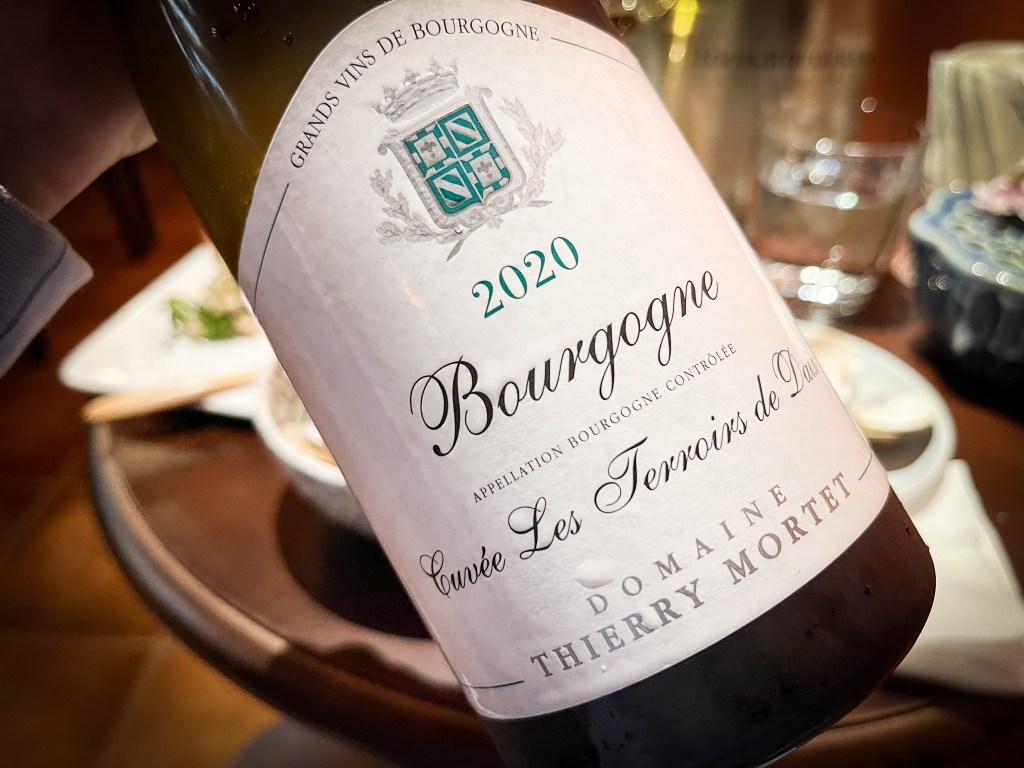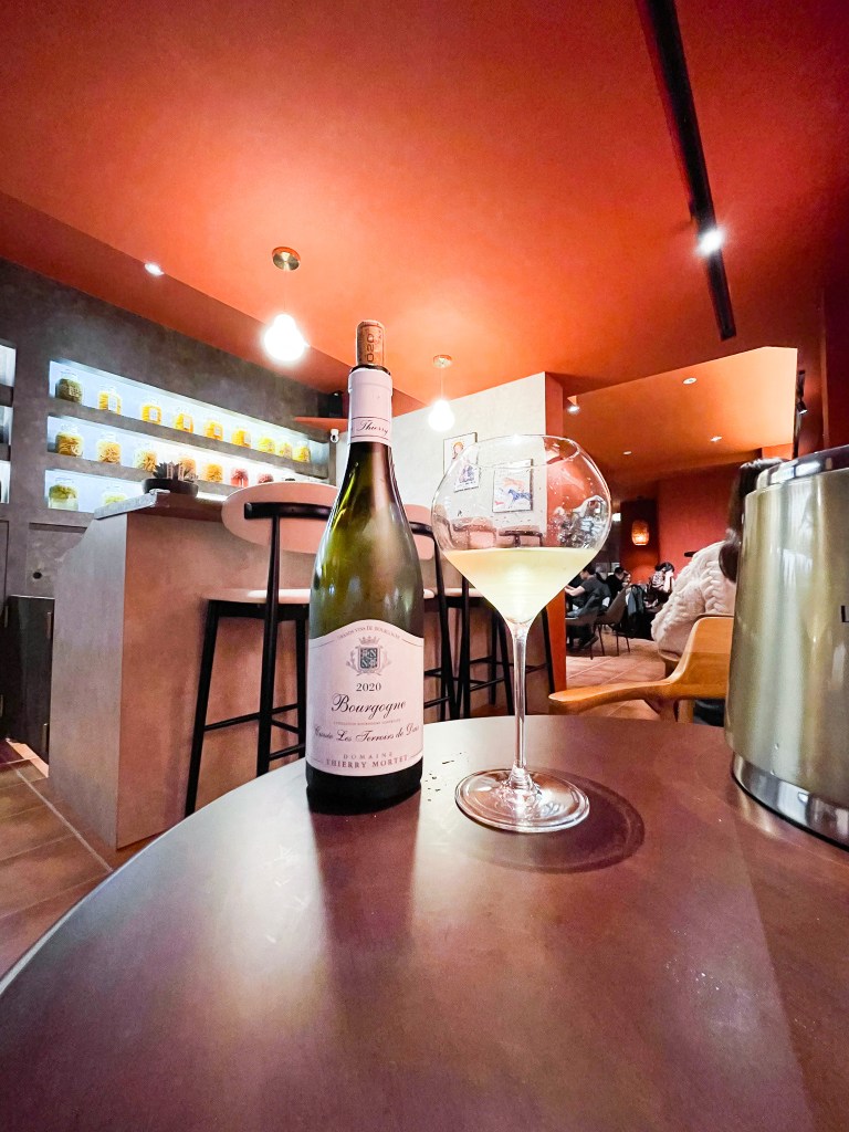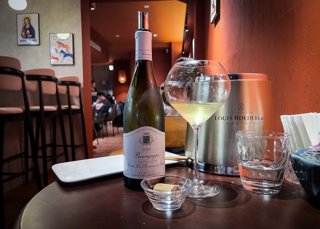 單瓶葡萄酒得要進餐廳點酒窖,瀏覽一番,決定選擇一支白酒,反正今天天氣熱,喝白酒,不論是早晚都爽。我選了DOMAINE THIERRY MORTET “LES TERROIRS DE DAIX" BOURGOGNE BLANC 2020(產地:法國 產區:Burgundy 葡萄品種:100% Chardonnay),好的個人第663號葡萄酒出爐,當然不能忘記介紹一下酒莊。