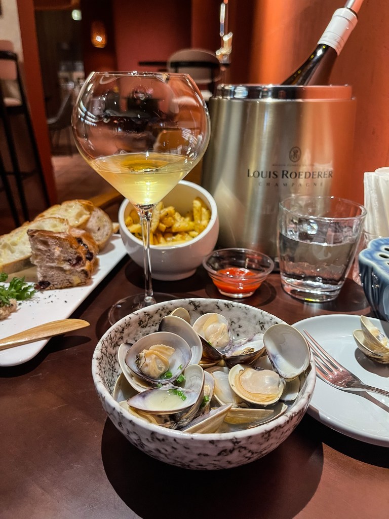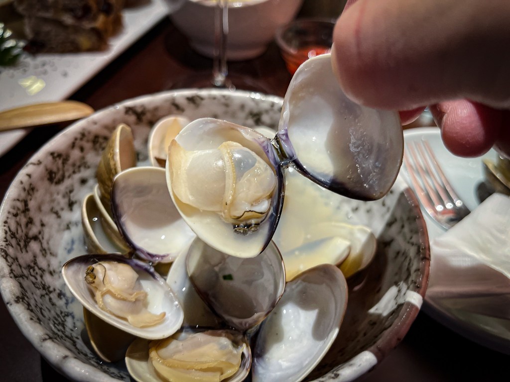 接著來的是以氛圍來說最適合搭配白葡萄酒的「蝦夷蔥 蛤蜊」。