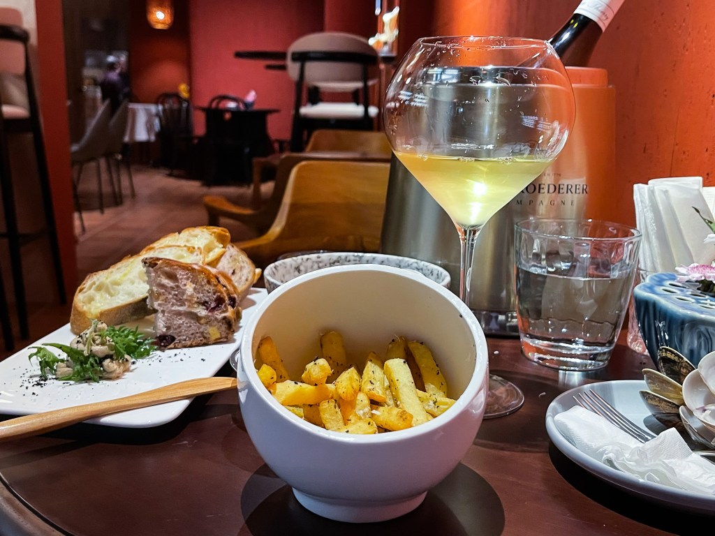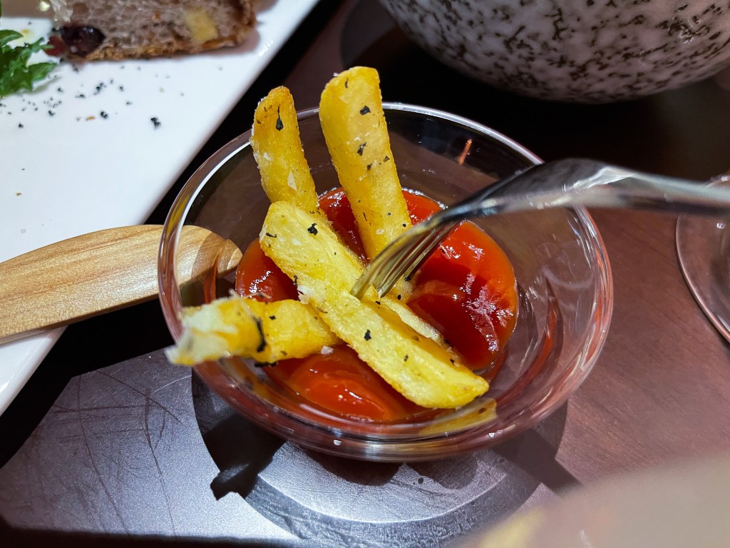 第一道是搭酒好朋友,「松露薯條」。