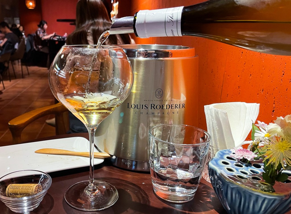 當酒冰鎮了一會兒,服務人員再開瓶幫我注入葡萄酒,酒杯十分乾淨而亮,同時也反射出酒的優雅。