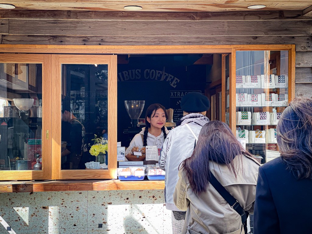 這裡已有許多人在休憩喝咖啡,看來外帶較好,不過手拿著邊走邊喝也不對,索性就選擇店門旁的木甲板位置坐下品味吧。