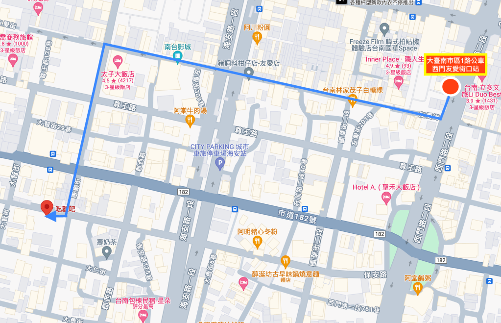 好的,無論如何,飯還是要吃啊。中午退房之後,準備找間店面坐下吃飯。過程中,我看看臺南街道,仍挺悠閒安靜的。此時此刻又想,不如去吃麵吧。吃個麵也行,吃個粥也好,讓肚子不空虛,等等坐車便可以好好休息一會兒。於是想到一間小館子,聽聞許久,但從未去吃過的吃麵吧 JAI MI BA。