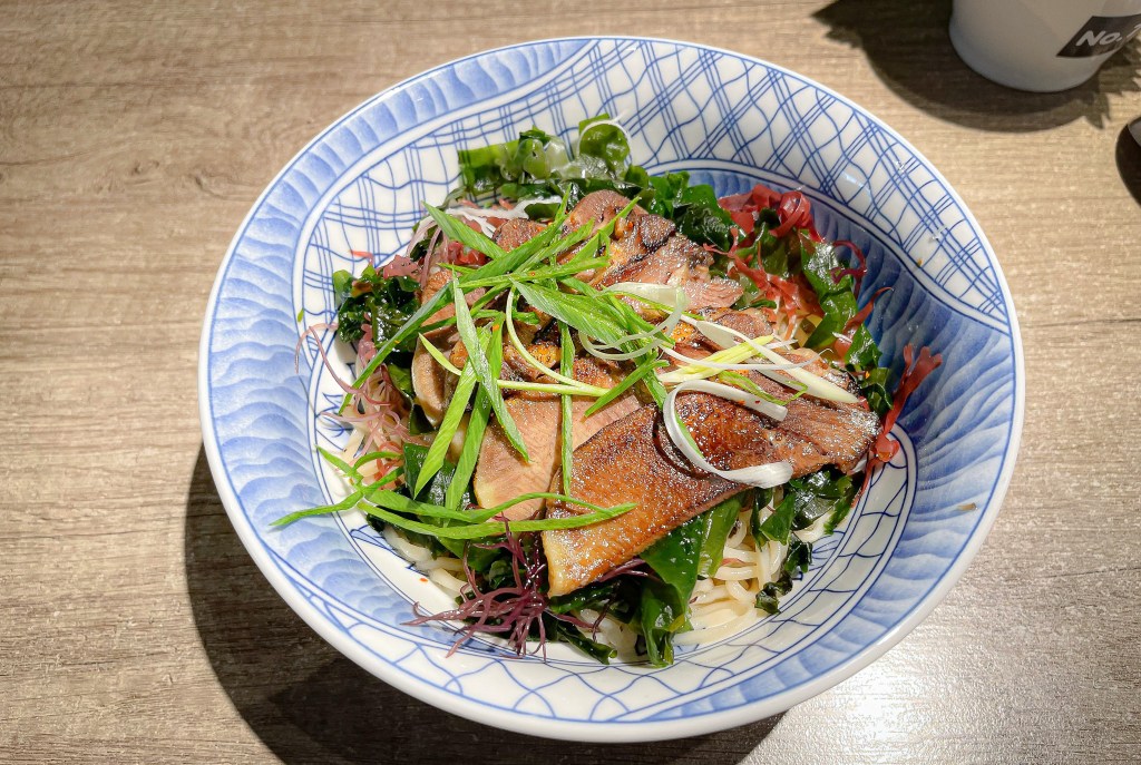 接著我點的麵來了,「炙燒牛舌松露醬拌麵」(山葵松露醬 海藻 澄清雞油)。