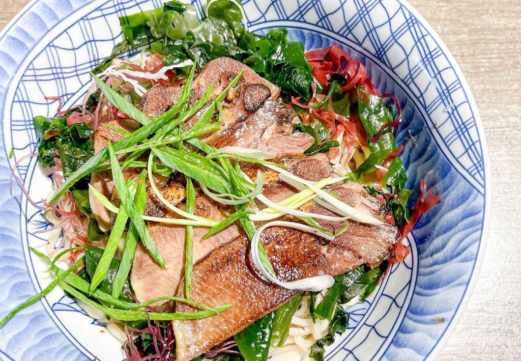 雖然只是個麵,萬不可小看它,所用的材料絕對不一樣,先論這面上的牛舌肉的煎烤的滋味真不錯,這怎麼讓我想到侯布雄的法式餐廳的鐵板煎烤味?