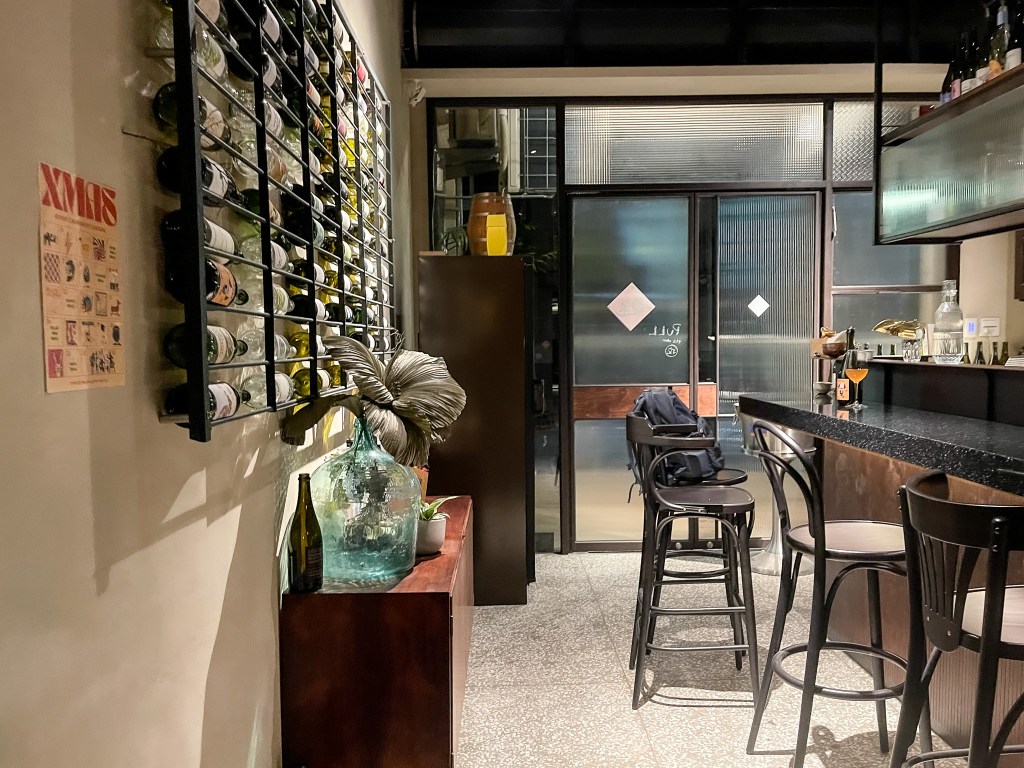 跑BAR?雞尾酒?當然不,在我的生活裡,雞尾酒吧只會待一家,但是葡萄酒吧則還可以,因為只有葡萄酒會願意讓我跑BAR。在FOUFOU吃完幾道小菜,喝了一支白酒之後,緊接著跑來中西區進進新光三越中山店附近的一間新的自然酒吧OUVERT。